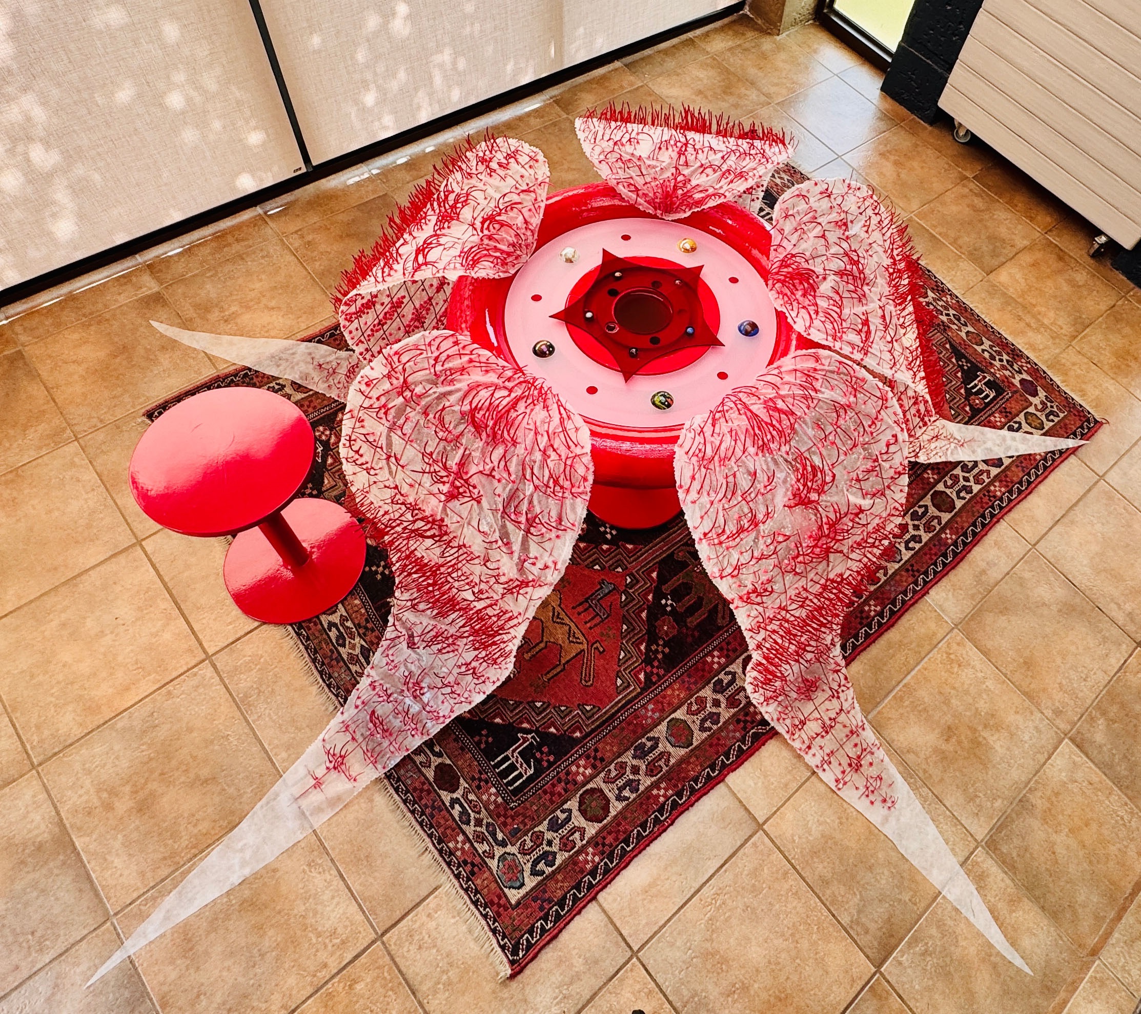 Augury After Autogogues takes its title from the idea of prediction ("augury"), in a future where everyone has become an "Autogogue"—a self-guided mystic relying on the sovereignty of ‘personal truth’. The exhibition playfully and satirically stages a speculative mysticism, exploring how the collapse of shared beliefs and the rise of individualized, automated interpretations shape our experience of reality. Using fabulated, interactive devices, the Autogogue sorts through the din of images, impressions, and changing contexts from everyday life and mass media. Inadvertently this reveals how old ways of understanding the world are struggling to keep up. It predicts a future were we’ll be set adrift, insulated within private cosmologies, as the complexity of information systems increasingly surpasses our capacity to endure them.