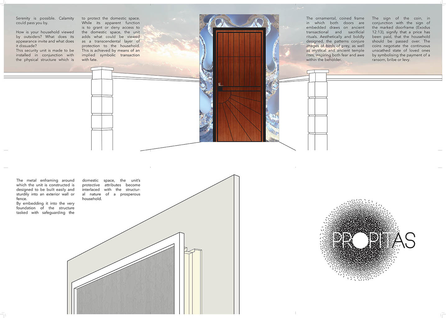 With the quasi-trademark of Propitas, the artist makes a fictitious consumer offer that targets the attitudes, expectations, fears and desires of the average middle-class household. Through imaginative play with elements from South African insurance, security, marketing and spiritual industries, the exhibited artworks make offers and promises for the propitiation and soothing of fate and, as such, suggest serenity for the implied consumers.